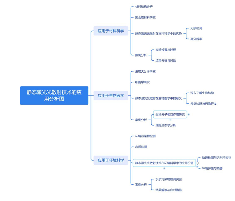 靜態(tài)激光光散射技術作為一種重要的物理測量技術,在材料科學、化學、生物學等領域具有廣泛應用。通過測量散射光強分布圖,可以獲取樣品的粒度分布、分子質量、溶液濃度等關鍵信息。該技術具有非侵入性、高靈敏度、實時在線監(jiān)測等優(yōu)勢,為材料科學等領域的研究提供了有力支持。